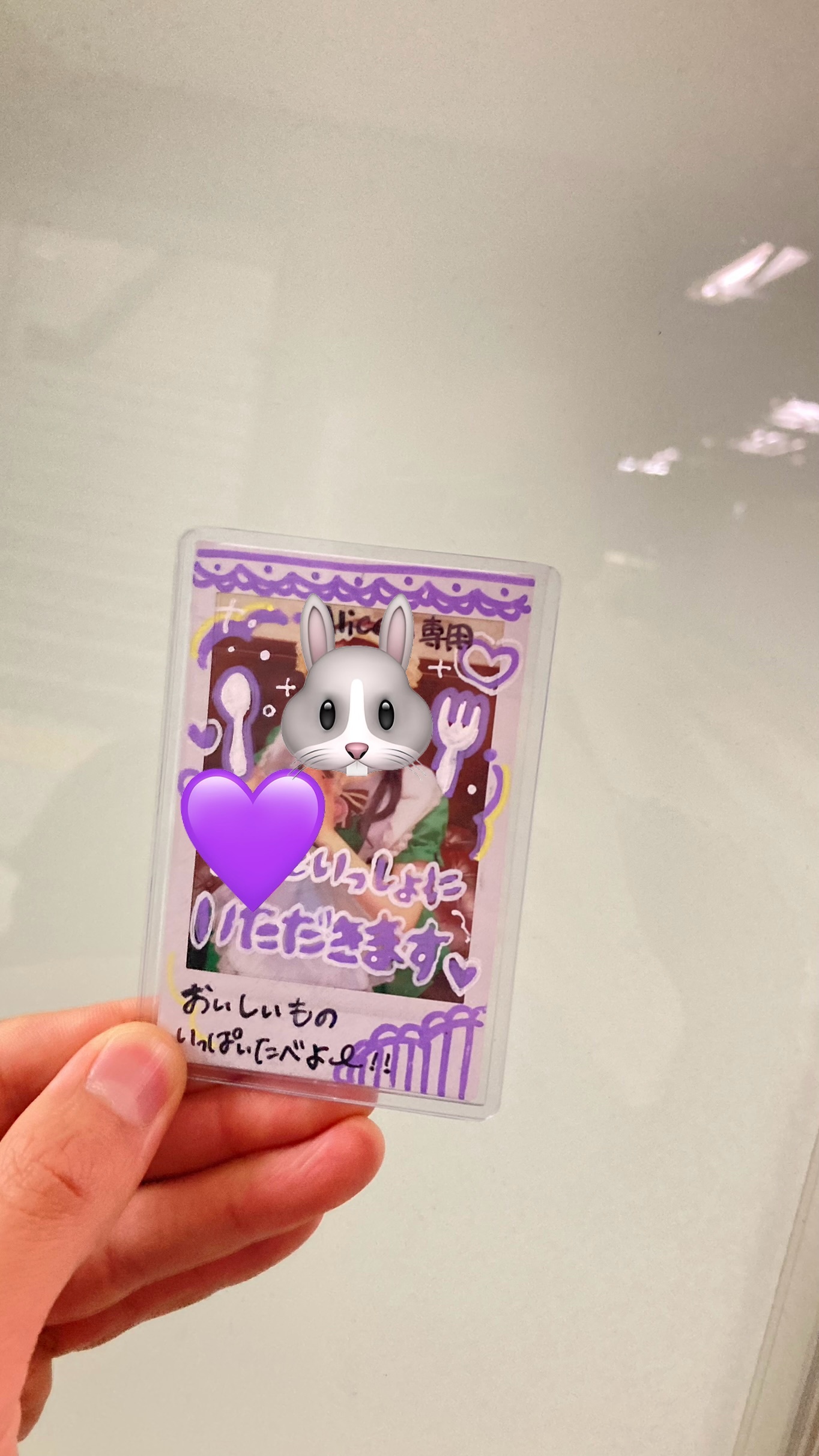 この辺りが無難になると思います。特にチェキは手元に残るあなただけの唯一のものになります。記念だったり可愛いからって言うのでもいいので入れてみましょう。また、チェキは落書きしてもらえるお店が多いので一緒に持ち歩けるようなデザインにしてもらうとより楽しさが増します!(写真は推しのいただきますチェキでよくご飯食べる前に写真に撮る時に使ってます)